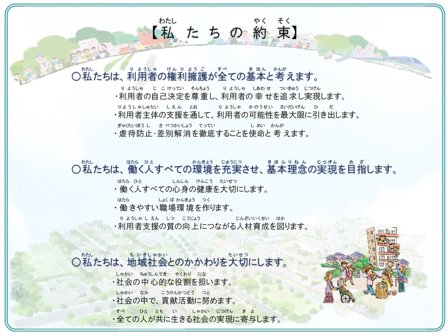 • 利用者の自己決定を尊重し、利用者の幸せを追求し実現します。